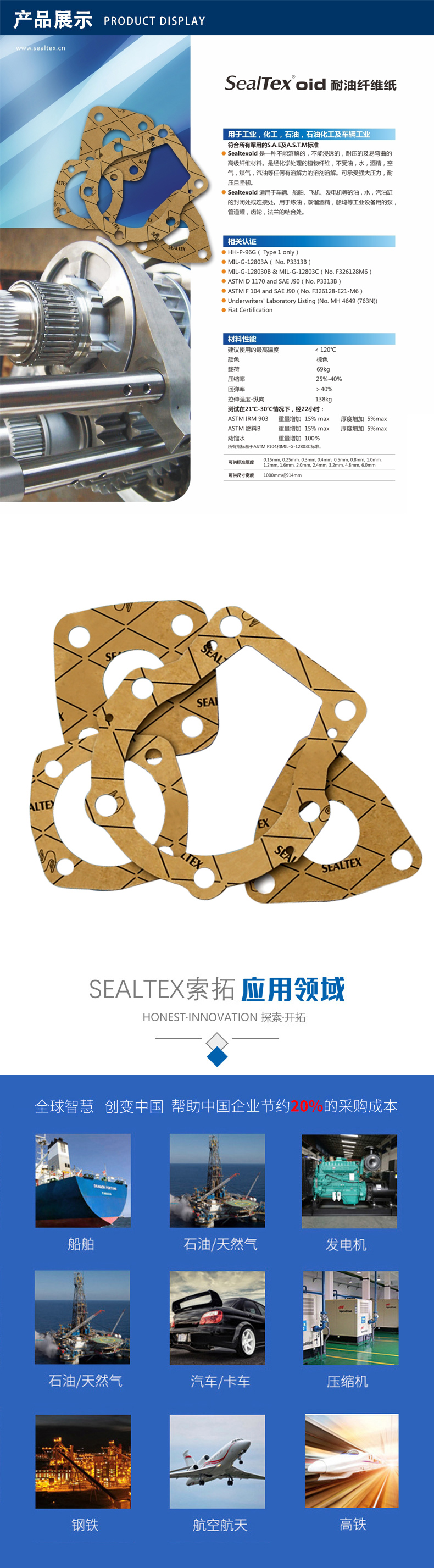 上海索拓密封材料有限公司長期致力于適用于各行業(yè)的密封墊、無石棉墊片、環(huán)保墊片和耐高溫隔熱產(chǎn)品的生產(chǎn)、加工及銷售